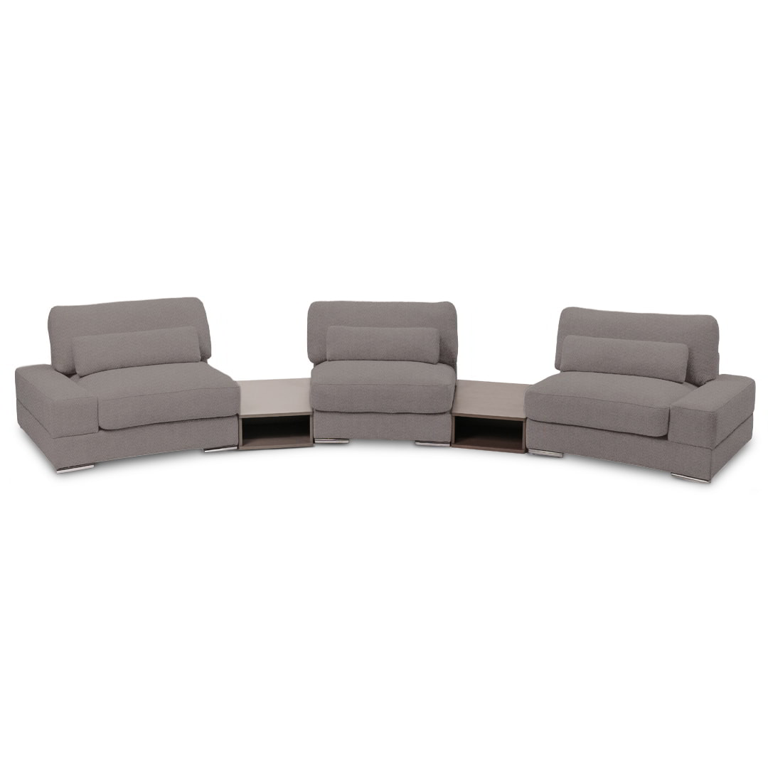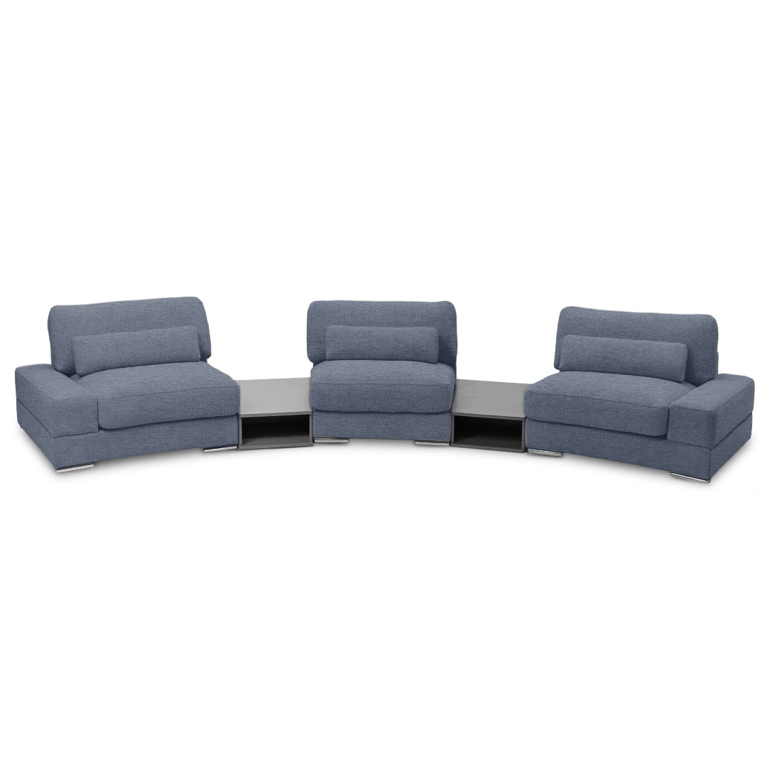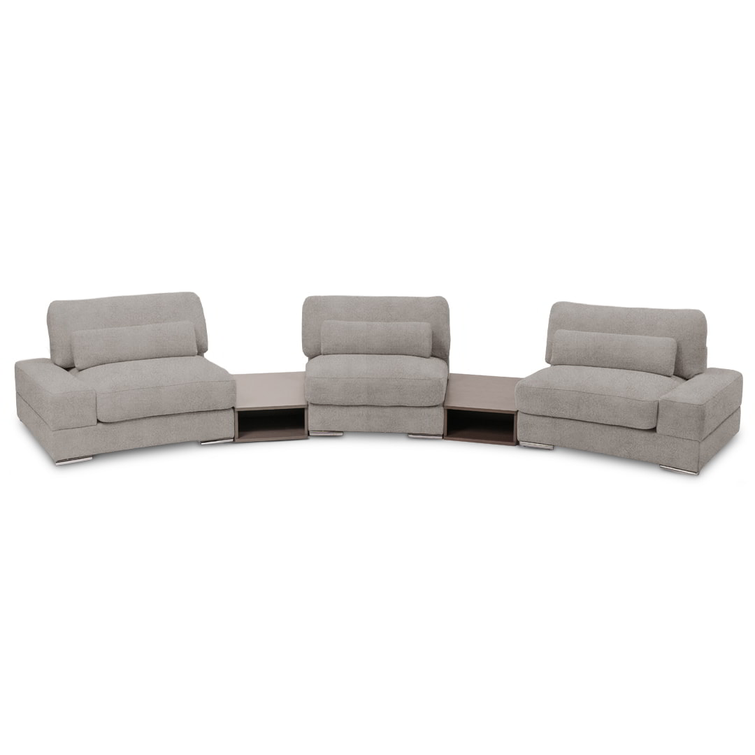 Diseñado bajo un sistema modular, Bianca permite múltiples configuraciones para adaptarse con fluidez a distintos espacios, estilos y necesidades. Está disponible en dos módulos con brazos, un módulo sin brazos y dos sofisticados módulos mesa de melamina de 18mm, lo que favorece tanto su transporte e instalación, como la personalización del ambiente.