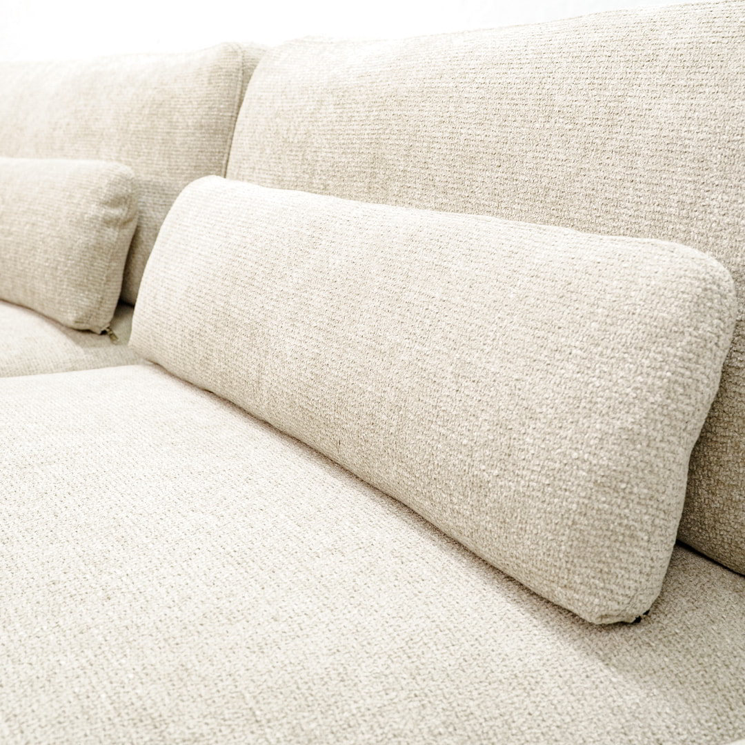 Los cabeceros y riñoneras están rellenos con plumas de ganso naturales, que aportan una suavidad envolvente y una grata sensación de liviandad al apoyar el cuerpo. Los asientos, por su parte, combinan espuma soft de densidad 32 kg con una capa hipersoft superior, logrando el equilibrio perfecto entre firmeza, adaptabilidad y un confort mullido excepcional. Al igual que en los respaldos, la superficie del asiento está recubierta con plumas de ganso, ofreciendo una sentada suave y acogedora que invita a relajarse.