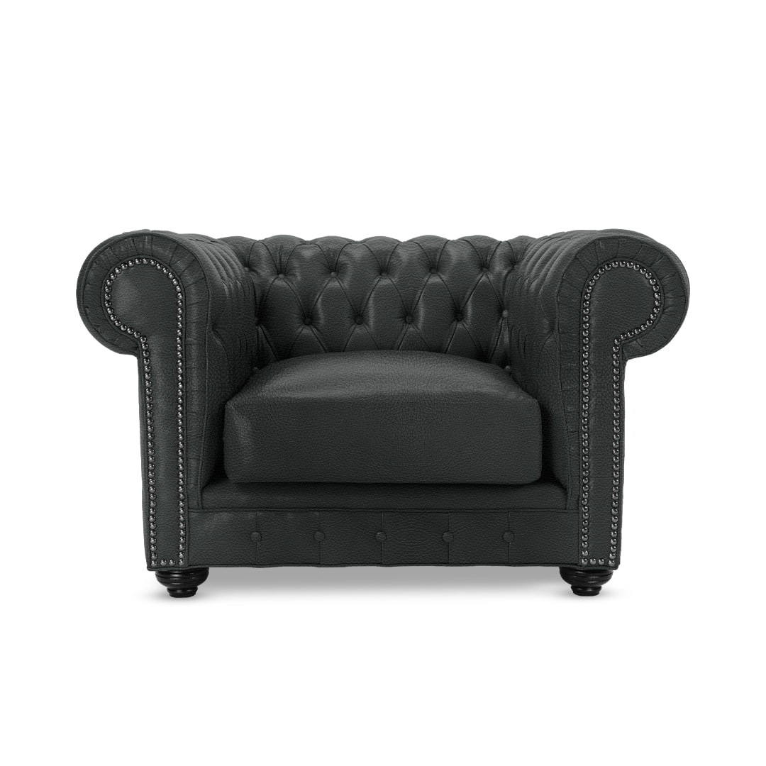 Majestuoso en presencia y refinado en cada detalle, el sillón Chester 1 plaza de estilo Chesterfield representa la fusión perfecta entre tradición y sofisticación contemporánea. Su característico capitoné abotonado en el respaldo y los brazos, meticulosamente trabajado a mano, rinde homenaje a un legado de elegancia atemporal.