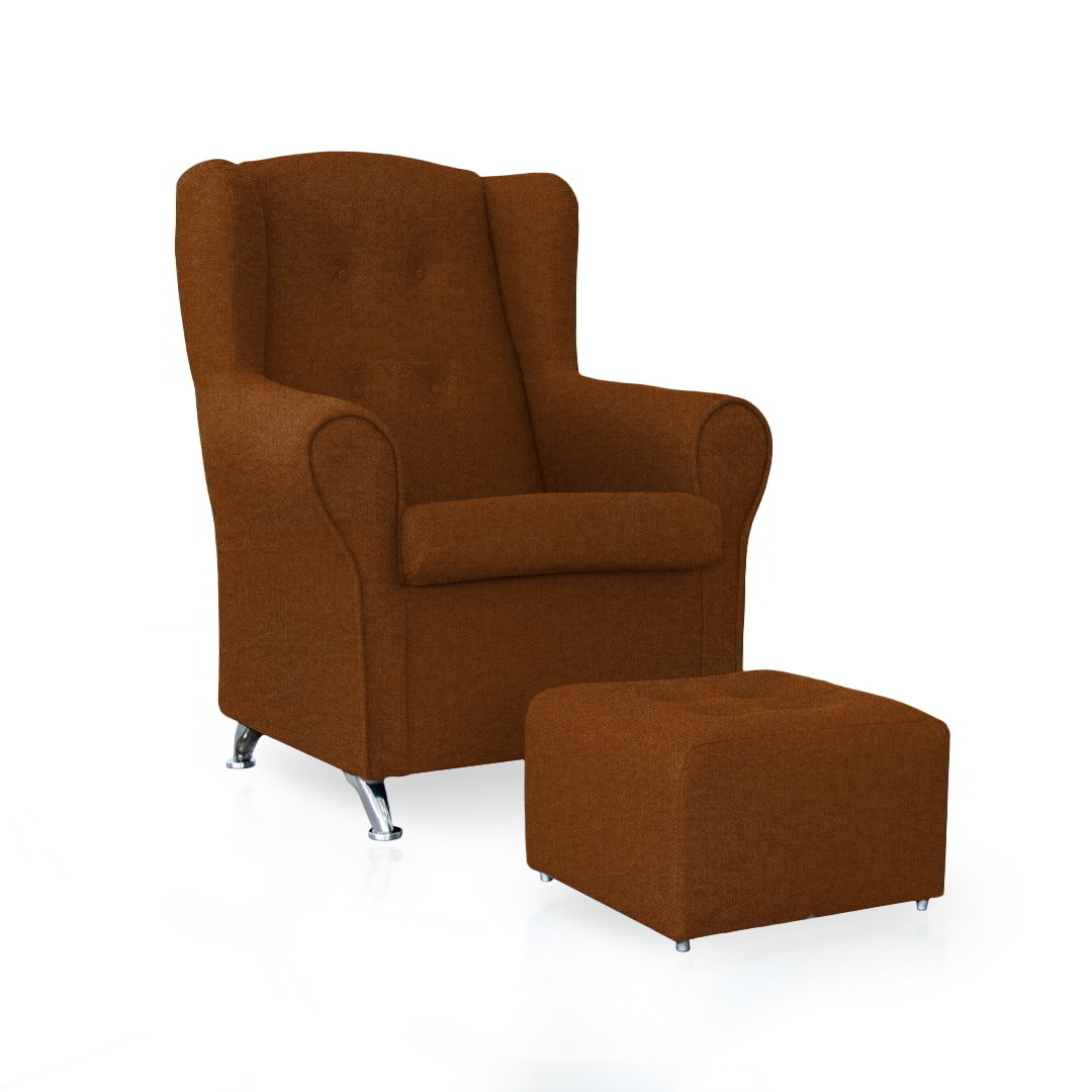 Incluye un práctico puff apoya pies, que complementa el confort del sillón, permitiéndote descansar completamente. Su estructura de madera maciza, relleno de goma espuma de alta densidad y patas metálicas le otorgan una resistencia superior.
