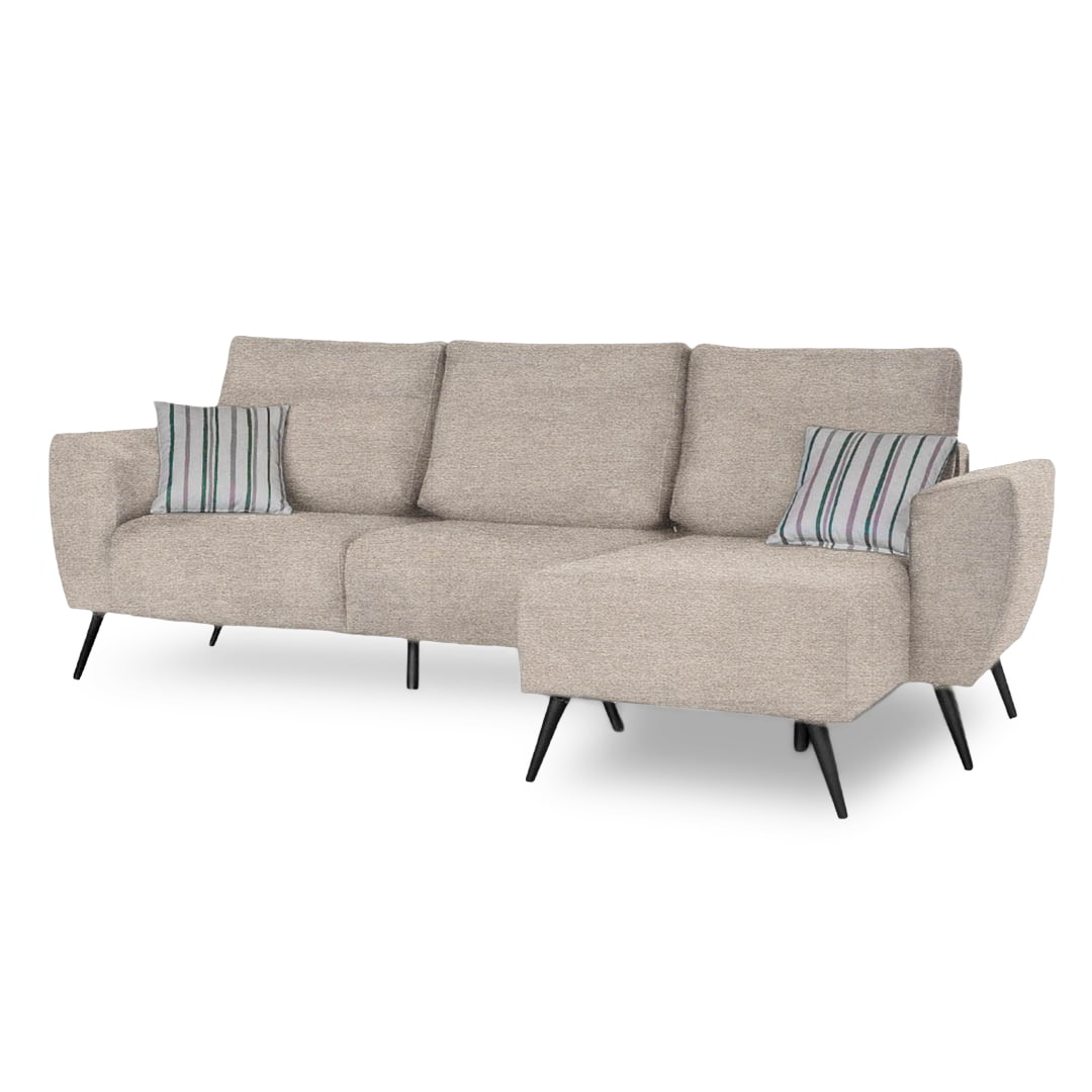 El Sofá Ottilia 2 Cuerpos + chaise longue se destaca por su diseño minimalista y moderno que aporta sofisticación a cualquier espacio. Su efecto visual flotante lo convierte en una pieza única para ambientes contemporáneos.